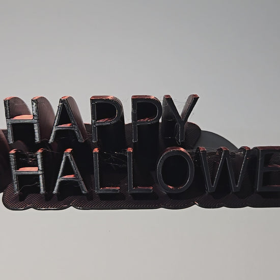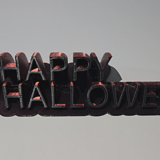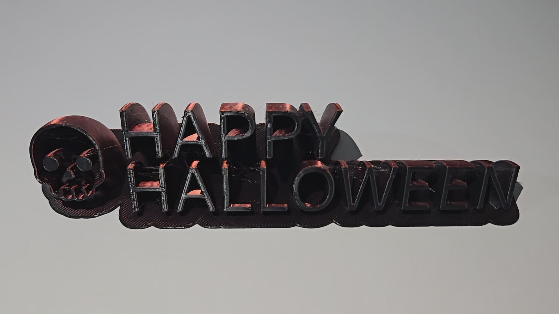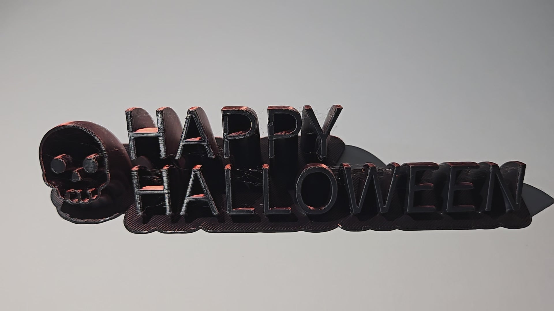 Happy Halloween Sign with Skull; 3d printed; decoration; home décor; black and red mix - color will vary due to nature of the manufacturing