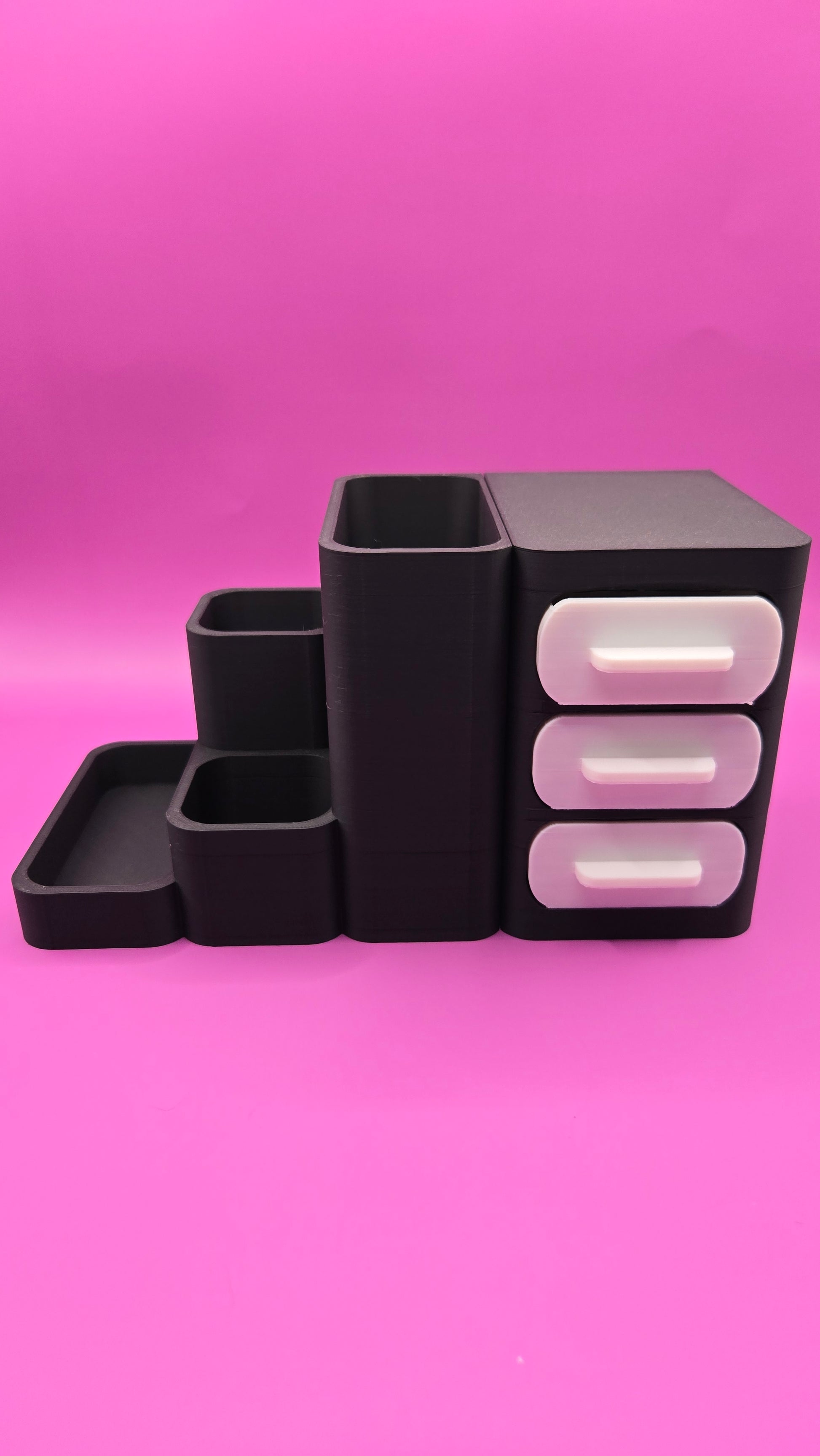 3d printed; desk caddy w tiny drawers-large; office; organizers; organization; charcoal and jade white