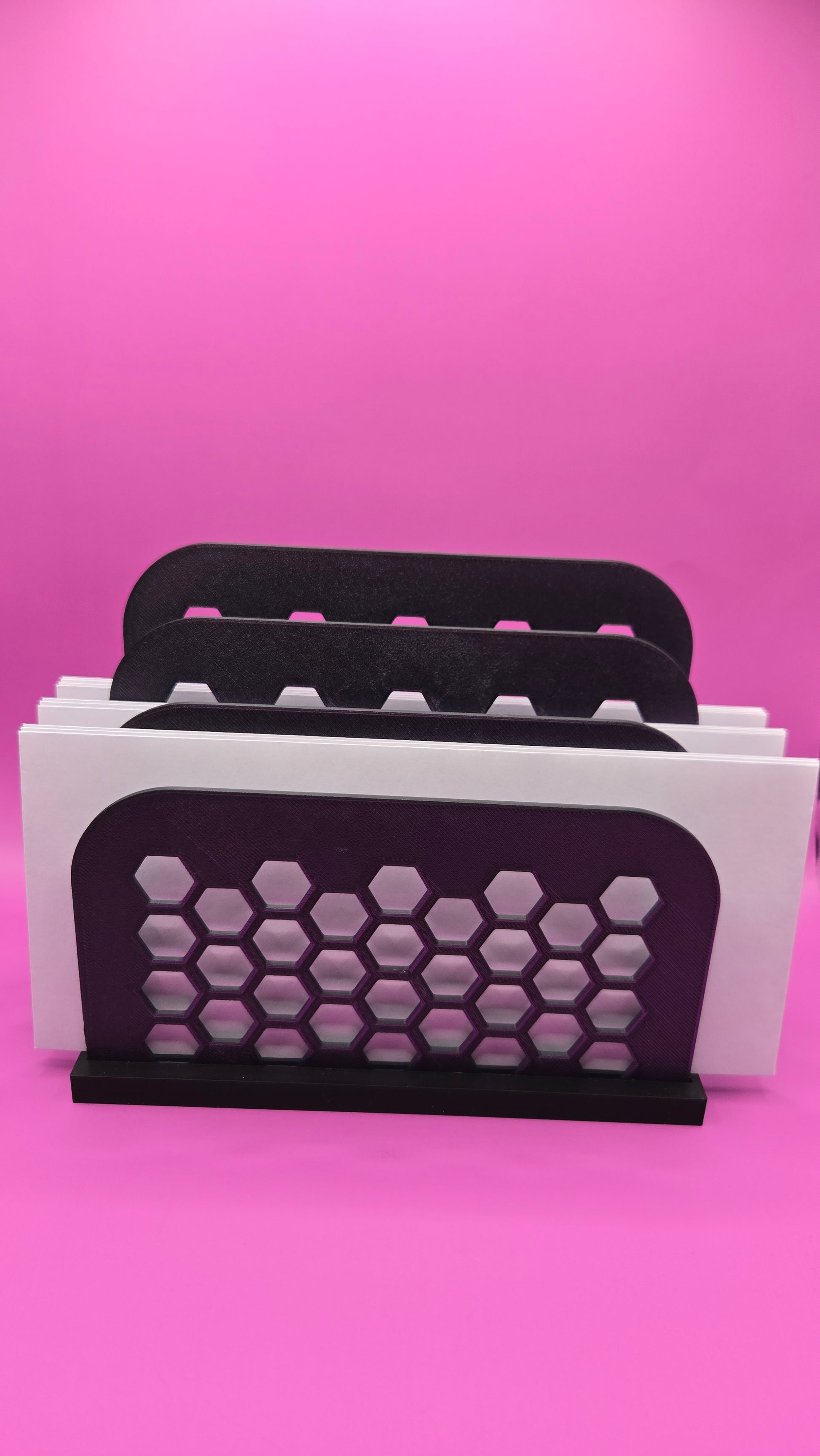 3d printed; letter organizer; 3 slots; office; organization; mail; bills; purple slots and black base