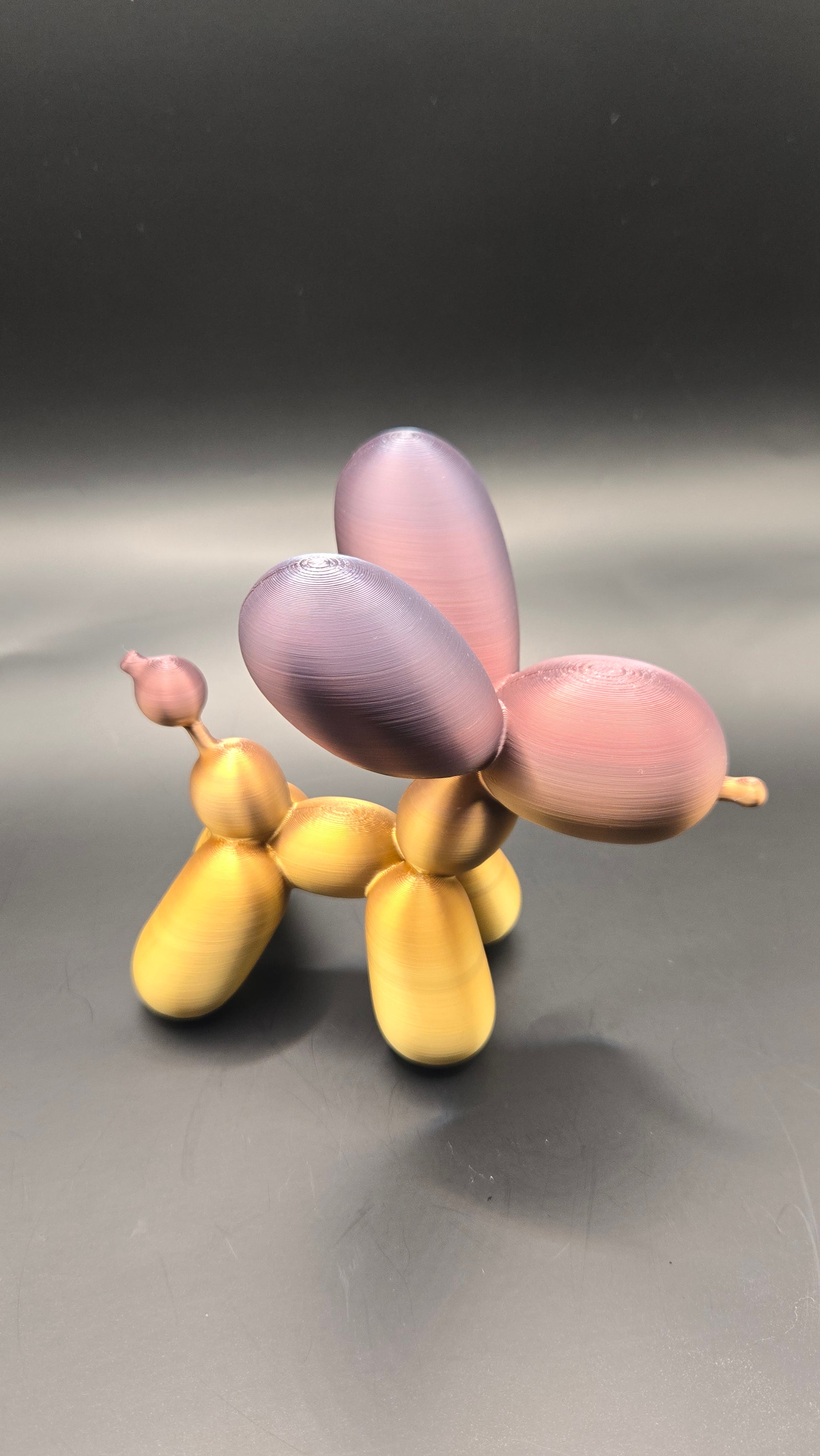 3d printed; medium balloon animal; balloon dog; home décor; sculpture; decoration; silk rainbow gradient - color will vary due to nature of the manufacturing