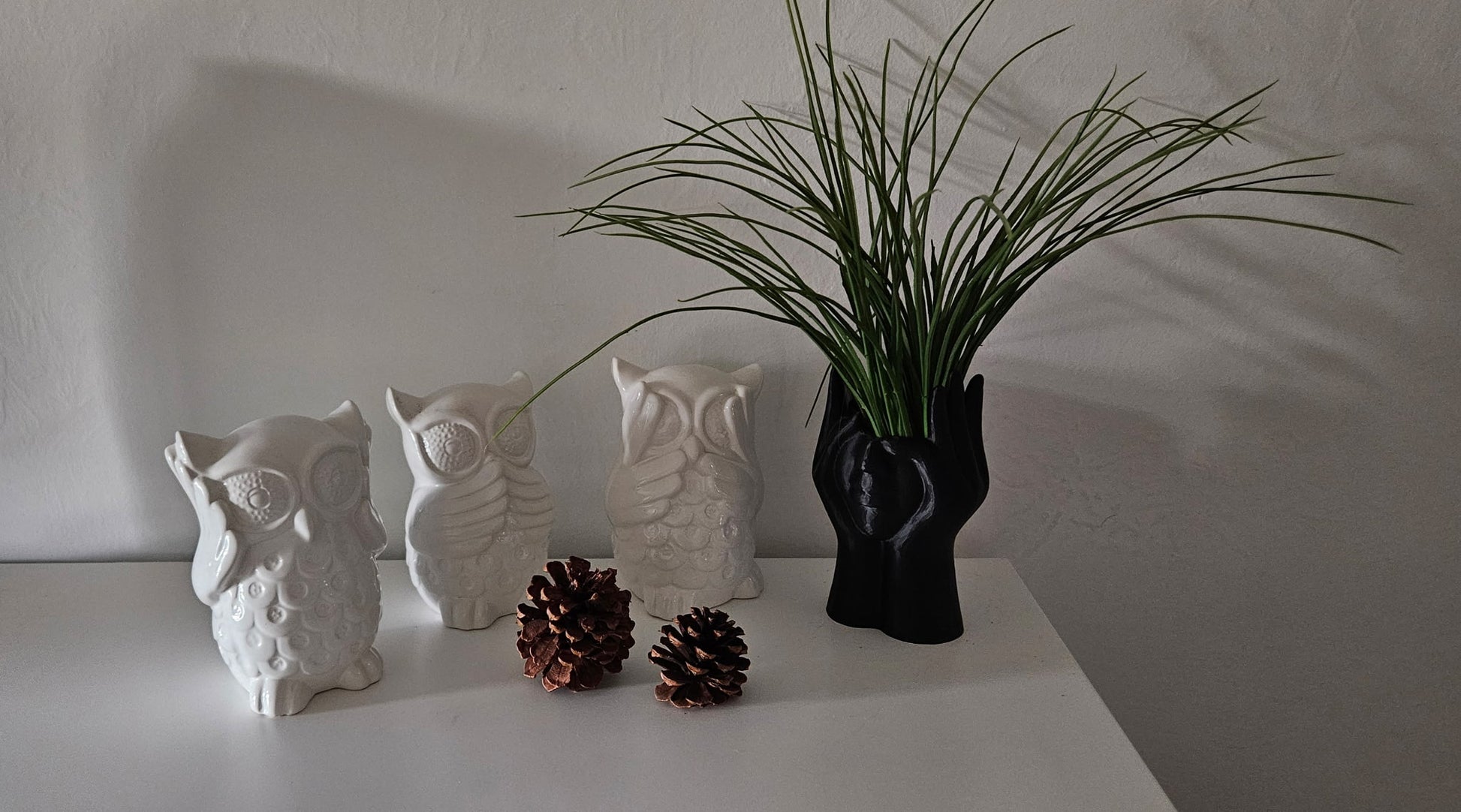 Note: pictured succulent, owls, and pine cones not included with vase sculpture